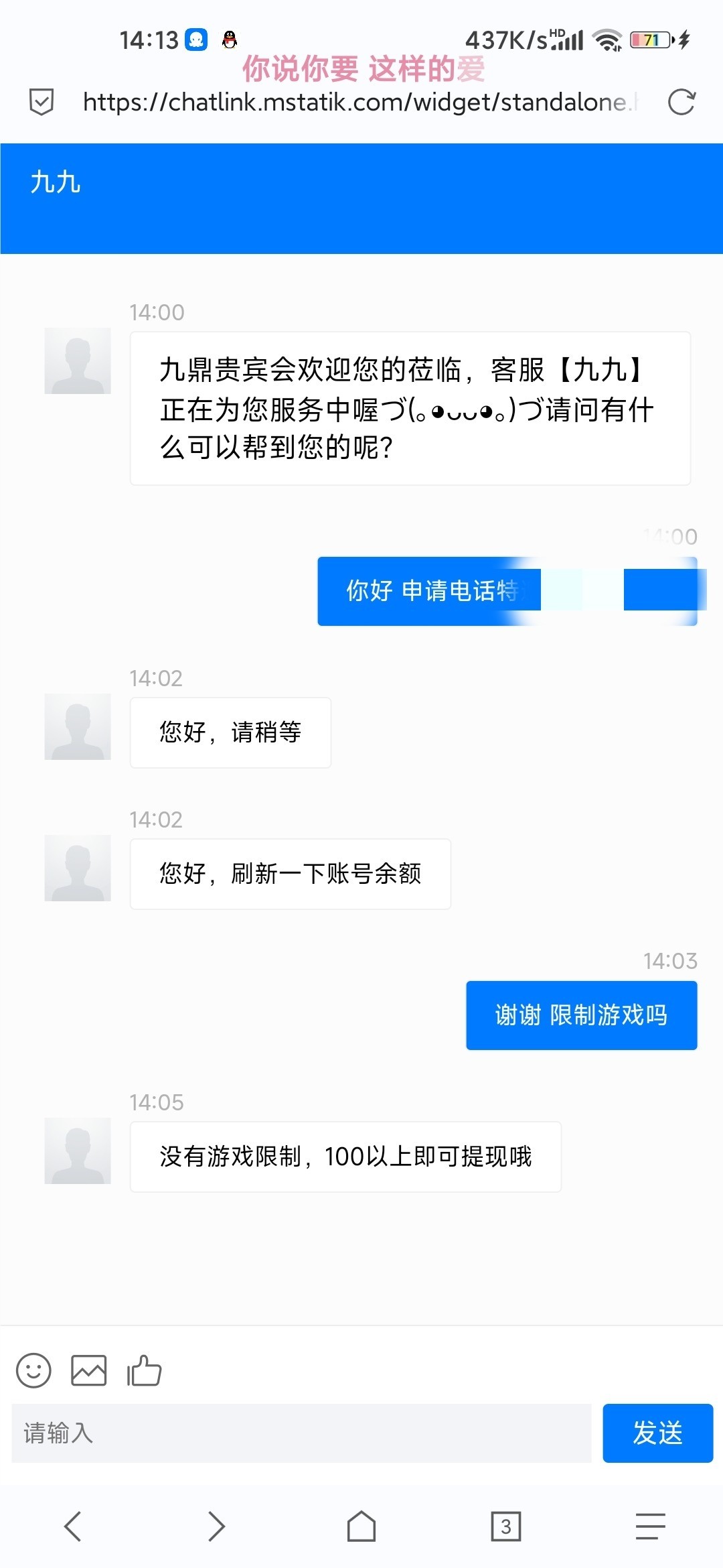 我前几天接到的电话,提了200到了