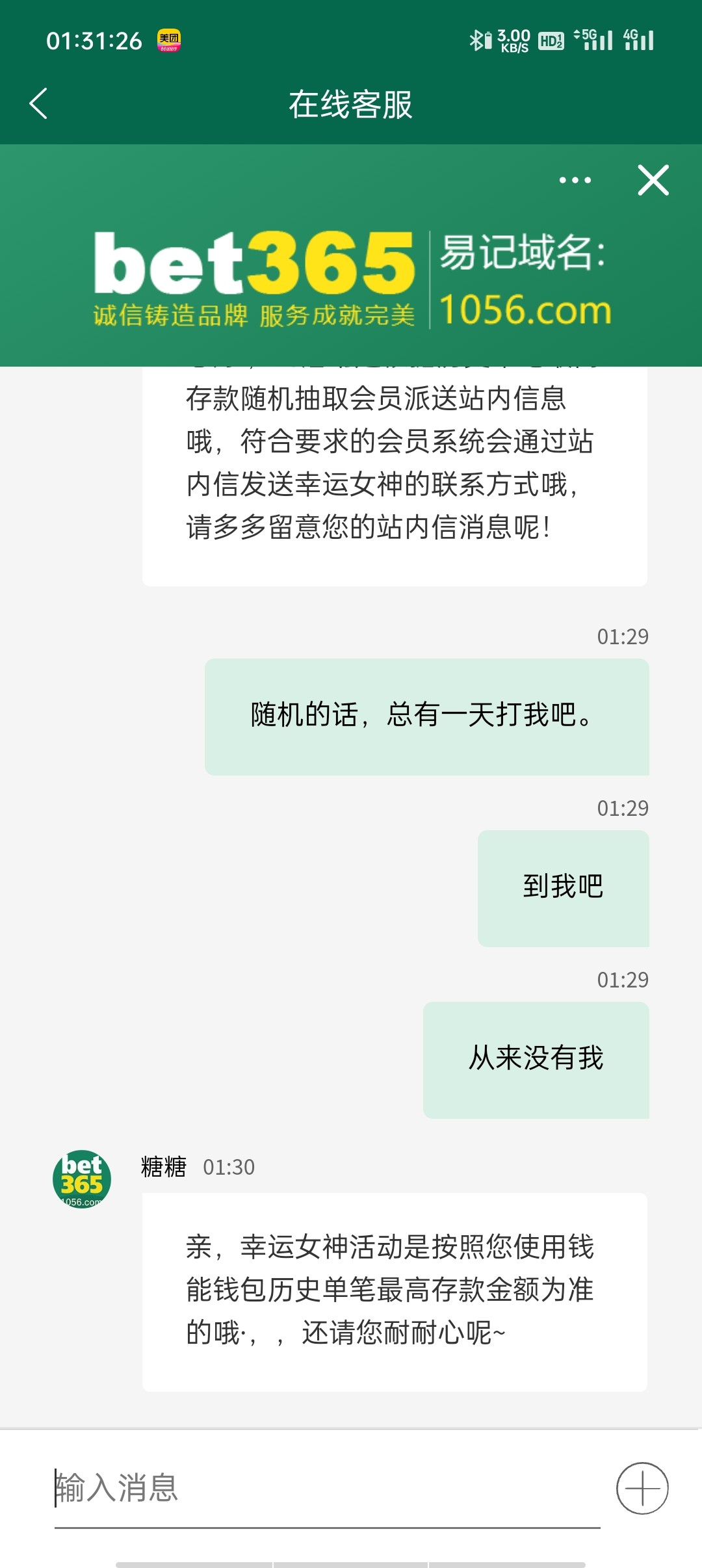 我应该是第一个送的011以前有活动加客服,直接找以前加的客服申请就送了888,可惜没打出来,3倍水