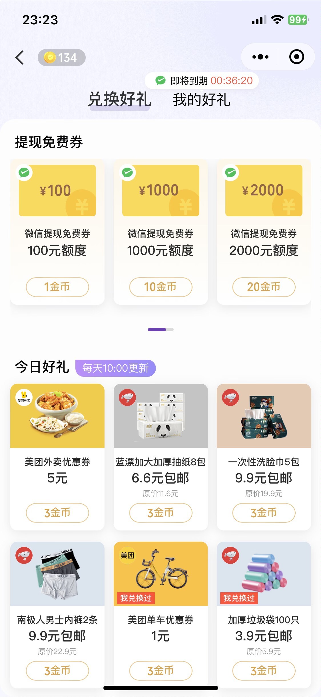 小程序搜索支付优惠经常用微信支付的里面有金币可以领取可以换提现额度还有腾讯会员还有其他的可以自行查看!