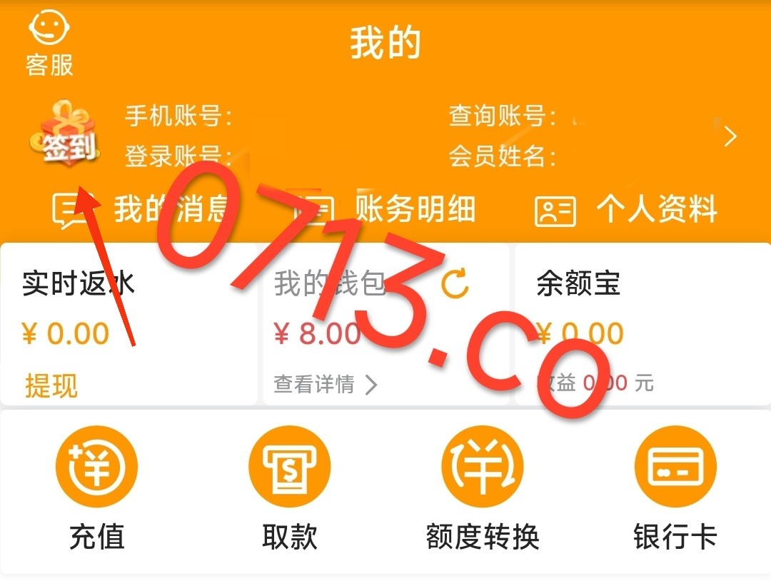 新老用户注册登陆 点击个人中心 左上角点击签到即可没有的就是不符合 无游戏限制最低提款100元