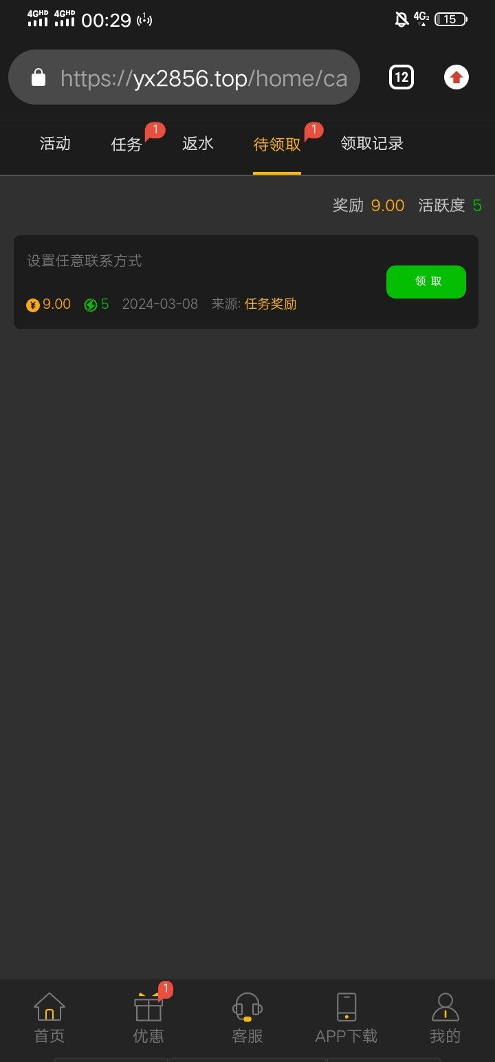 你是真的狗,另外提醒大家,别去!!!这个9彩金,需要10几个小时以后才可以领取,最主要的是里面有特邀彩金。如果你注册了,特要来了就废了。特邀彩金是88