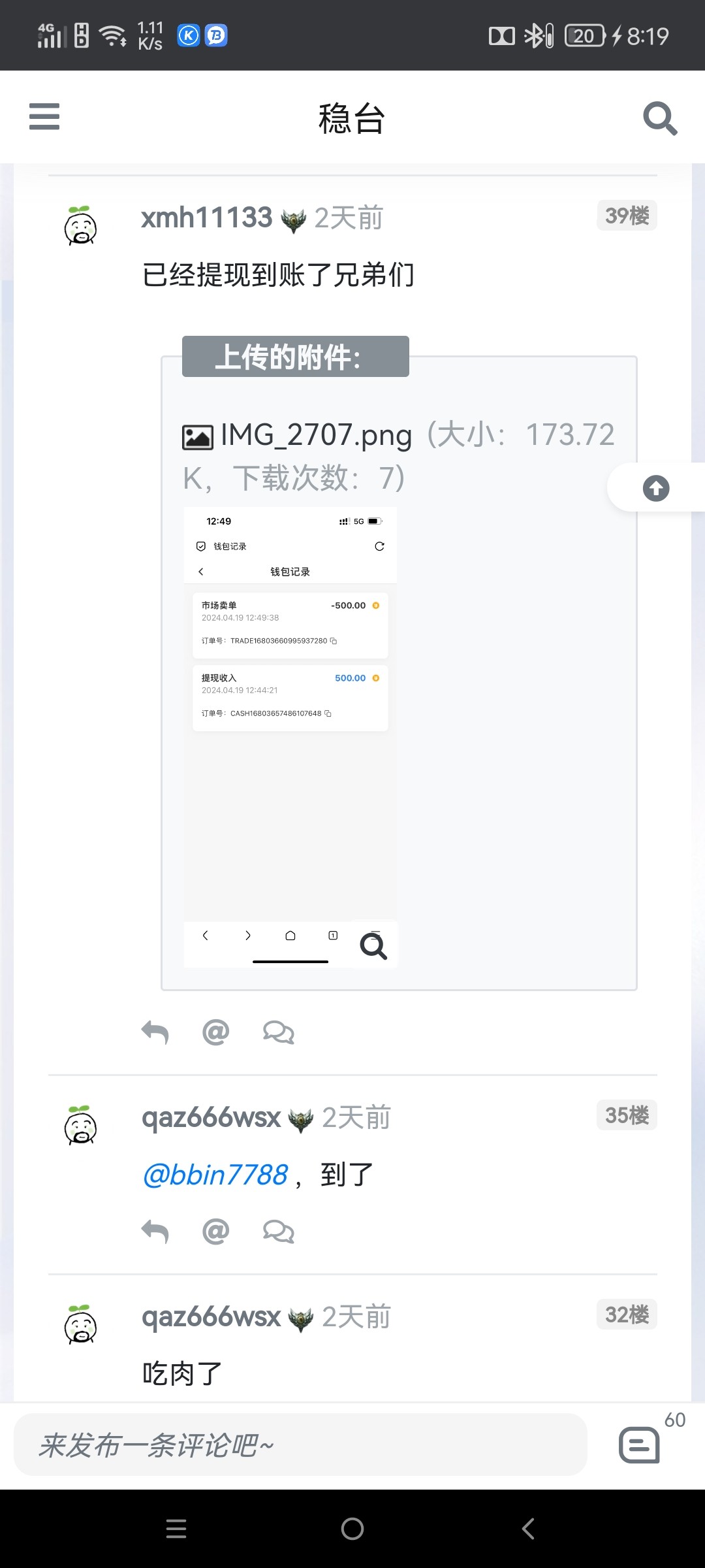是老哥那边发的,发了有几天了,我看评论有部分人是白嫖的,他最低就是500块,这玩意儿能过就过吧,过不了删掉没关系的