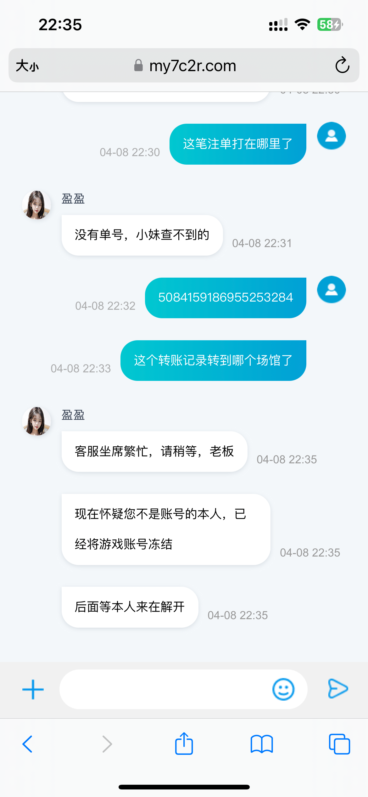 在蜘蛛社区走的胖虎链接,清明节左右打的五龙捕鱼,提现半天不到帐,被平台自导自演改密码上号梭哈余额,原本还以为是平台搞的,看了另一个帖子的凯亚娱乐城被黑的评论,感觉是胖虎上级去平台那改我密码然后上我号梭哈了,因为我赢了相当于把他的亏损给吃了