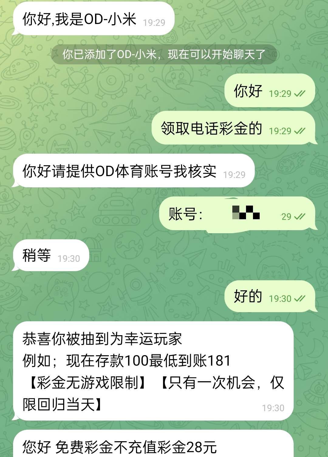 碰瓷电话回访彩金,老用户可以去联系在线客服说领取电话彩金发账号给他查有的话他会给你发一个聊天软件加专员就行了,明天再去吧晚上8点就下班了!