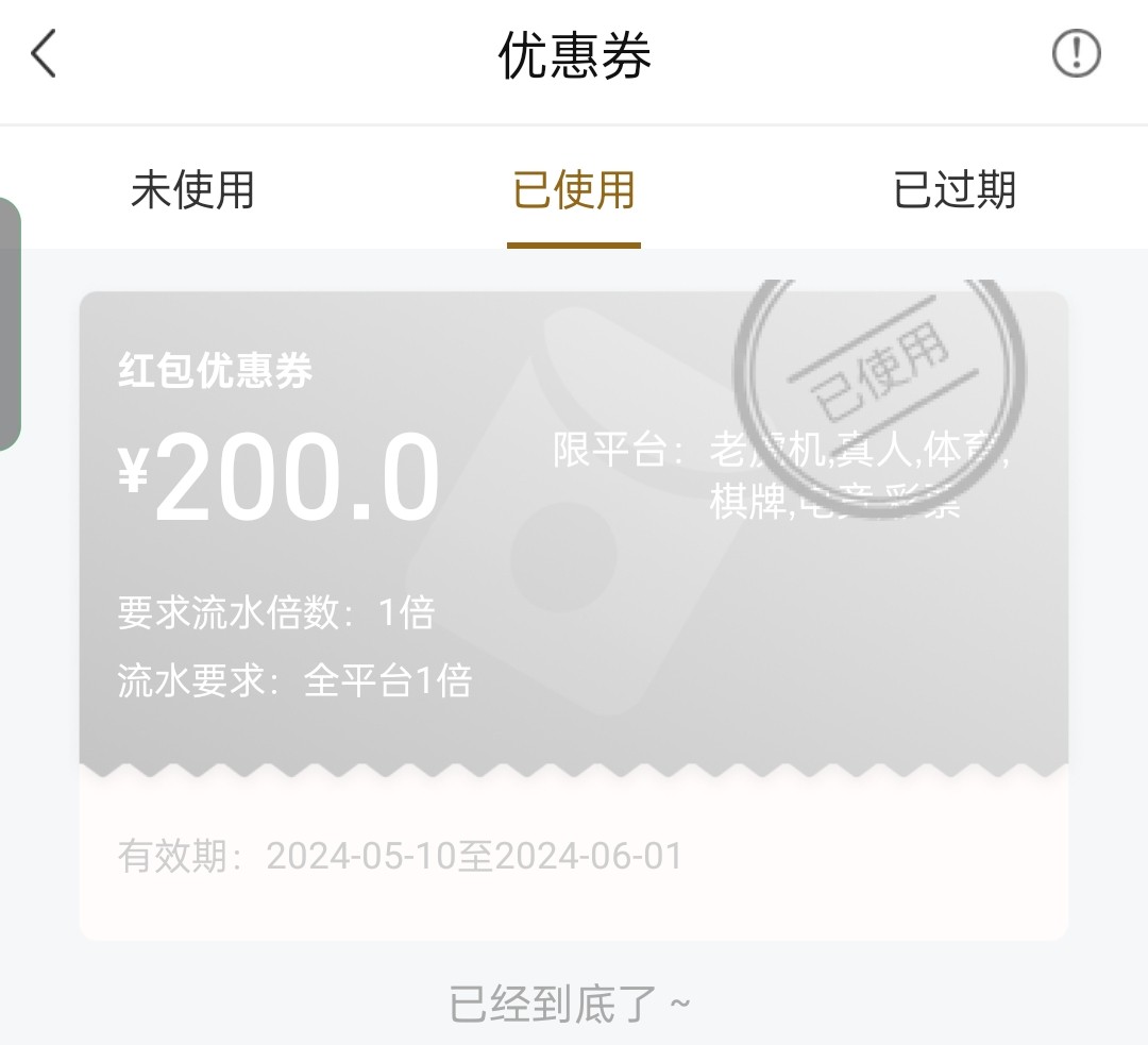 不一定输完吧 只要本金下注后 余额是0 就可以用二百的优惠券,但是提款满活动的最低门槛即可。