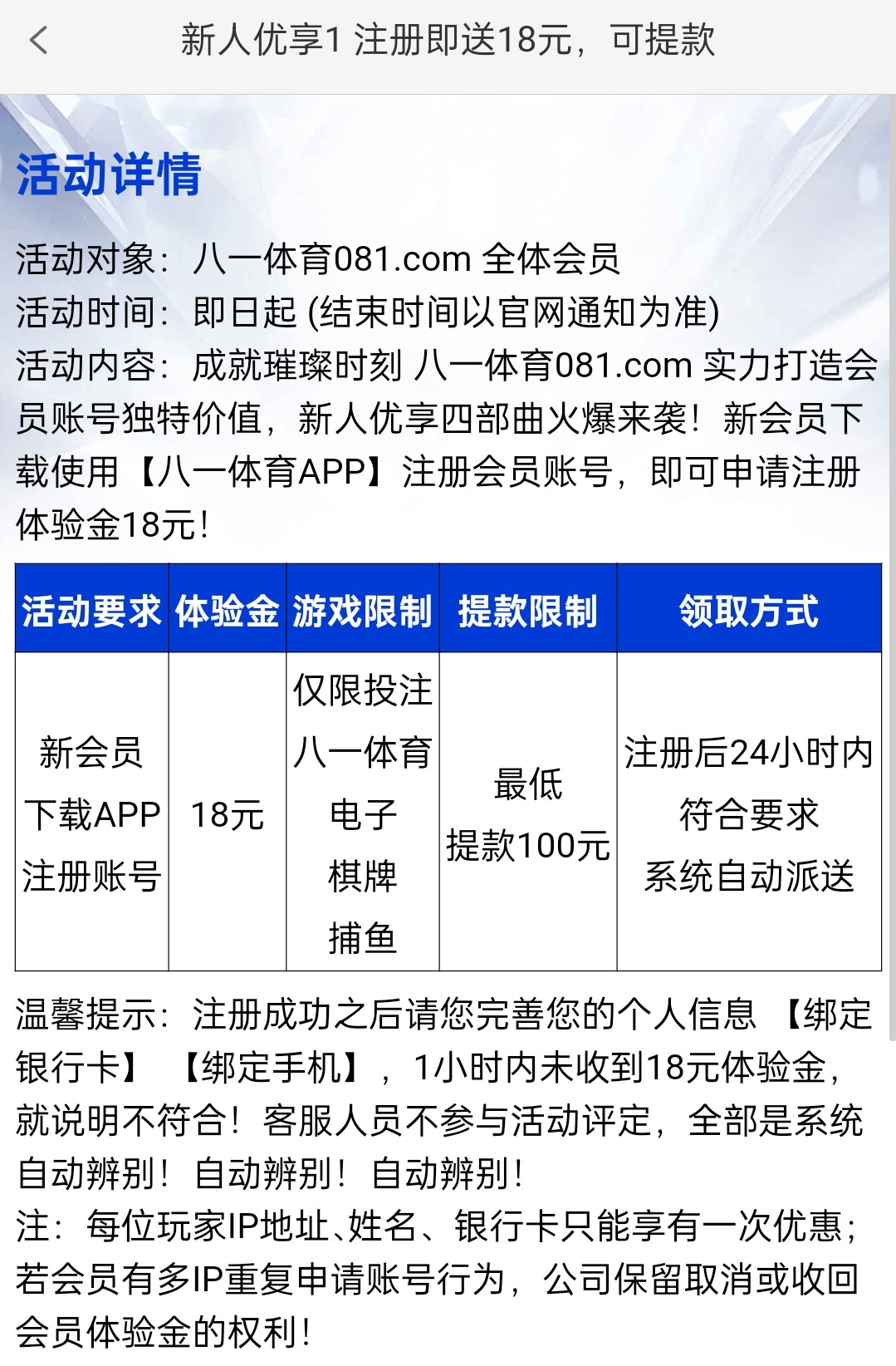 新用户下载app注册绑卡 24小时自动送18 有就有没有就没有 都可以去试试 游戏和提款限制自行查看优惠