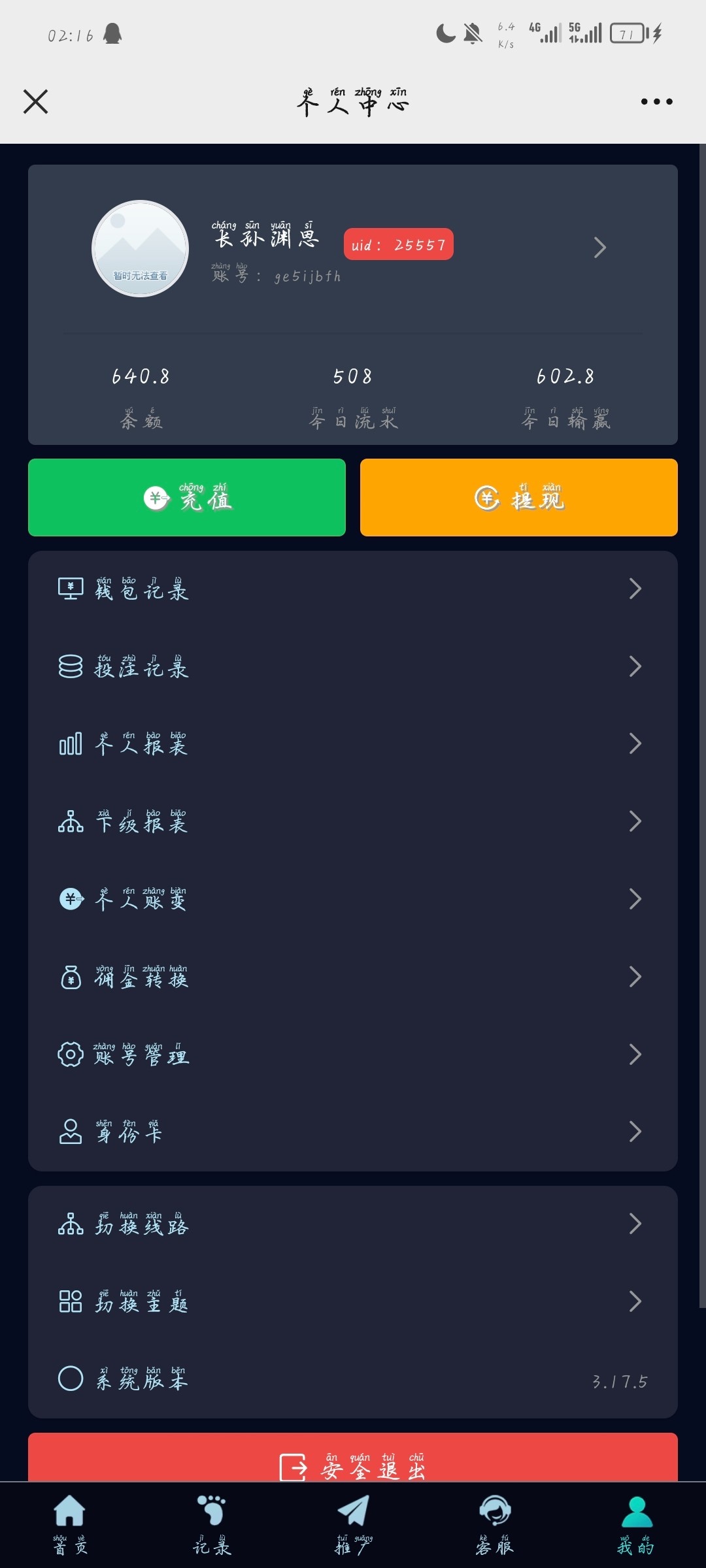 出款情况:自测(严禁充值