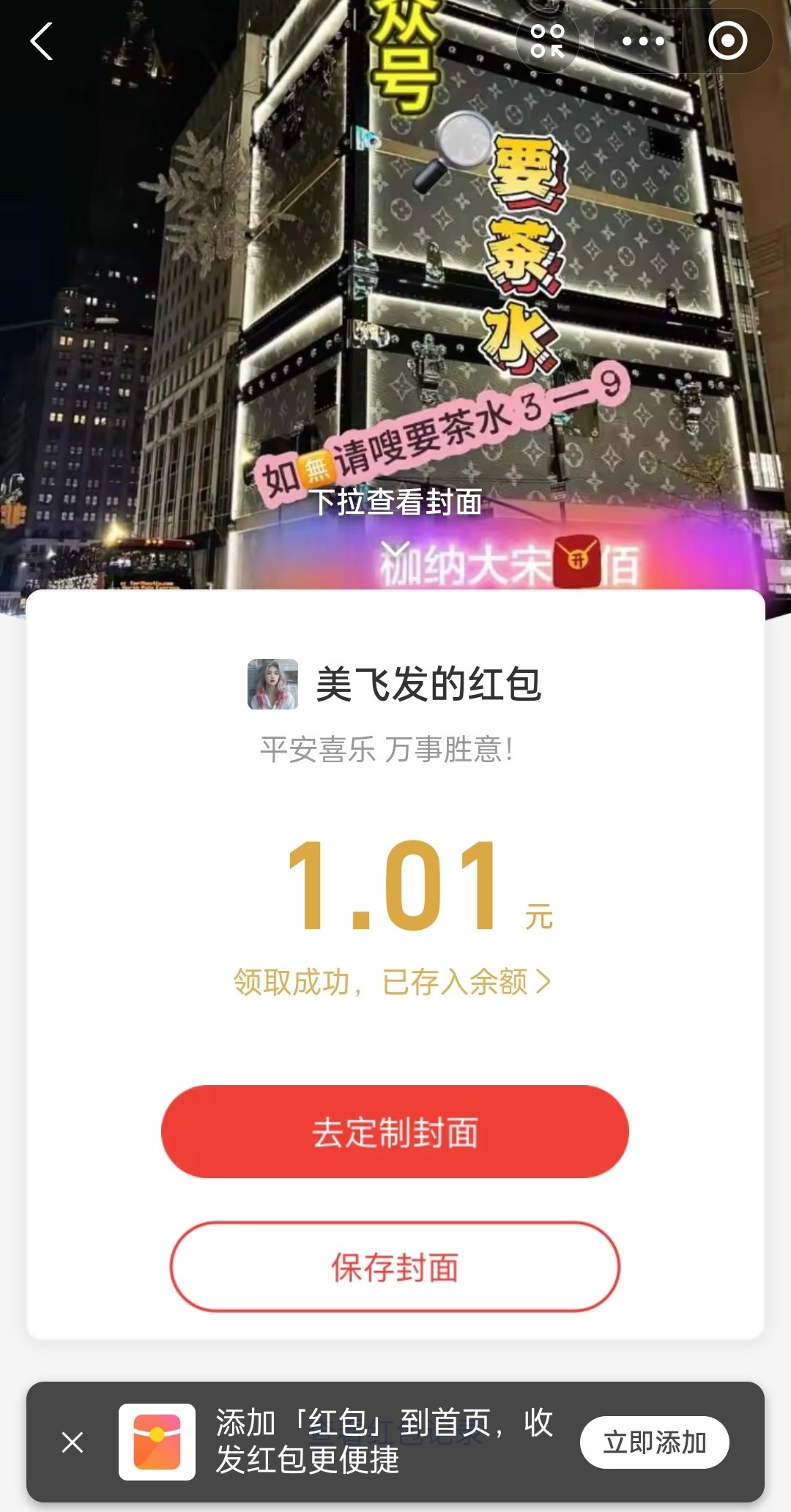 收到支付宝红包,看红包文字。