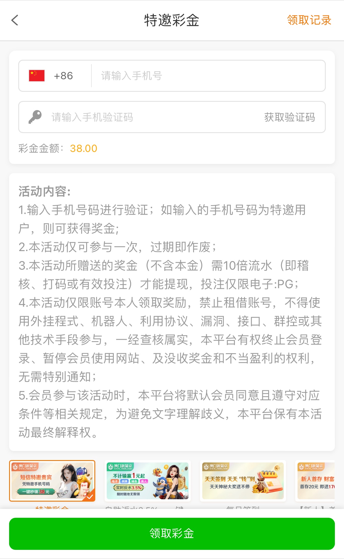 碰瓷特邀,彩金10倍流水,限PG电子