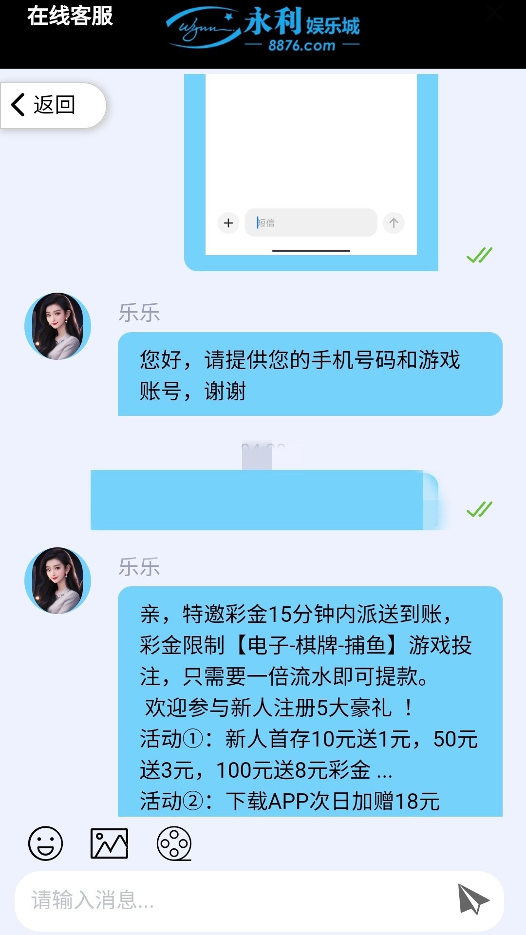 碰瓷短信/电话特邀彩金,联系客服申请,彩金1倍流水,限电子捕鱼棋牌