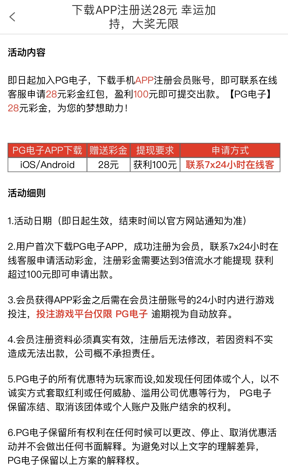 下载APP注册完善资料,联系客服申请,满100提现,3倍流水,仅限PG电子,查IP
