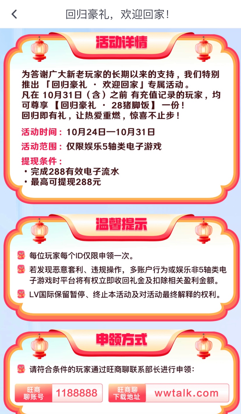 有历史存款过的兄弟可以去联系旺旺客服领取彩金,旺旺号:1188888