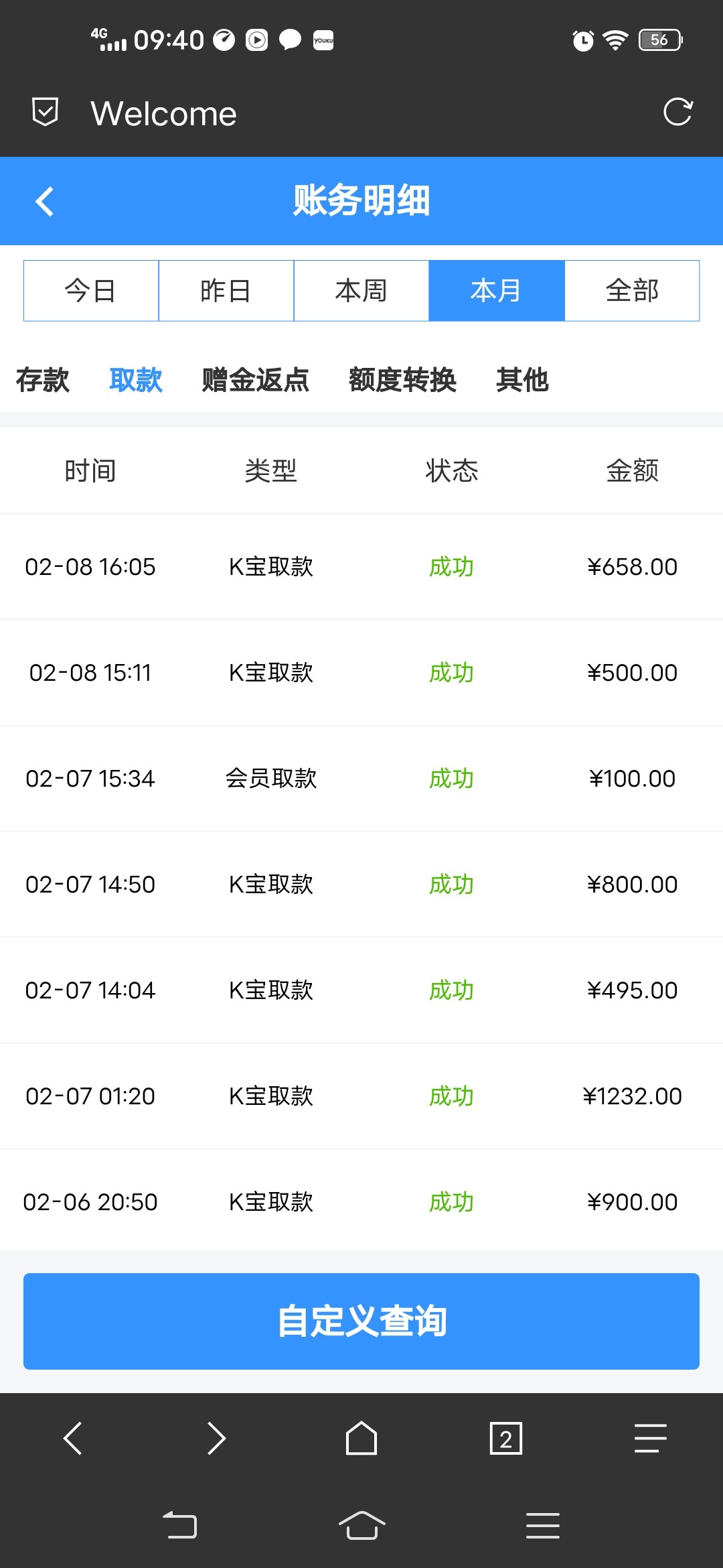 188下款260,到账