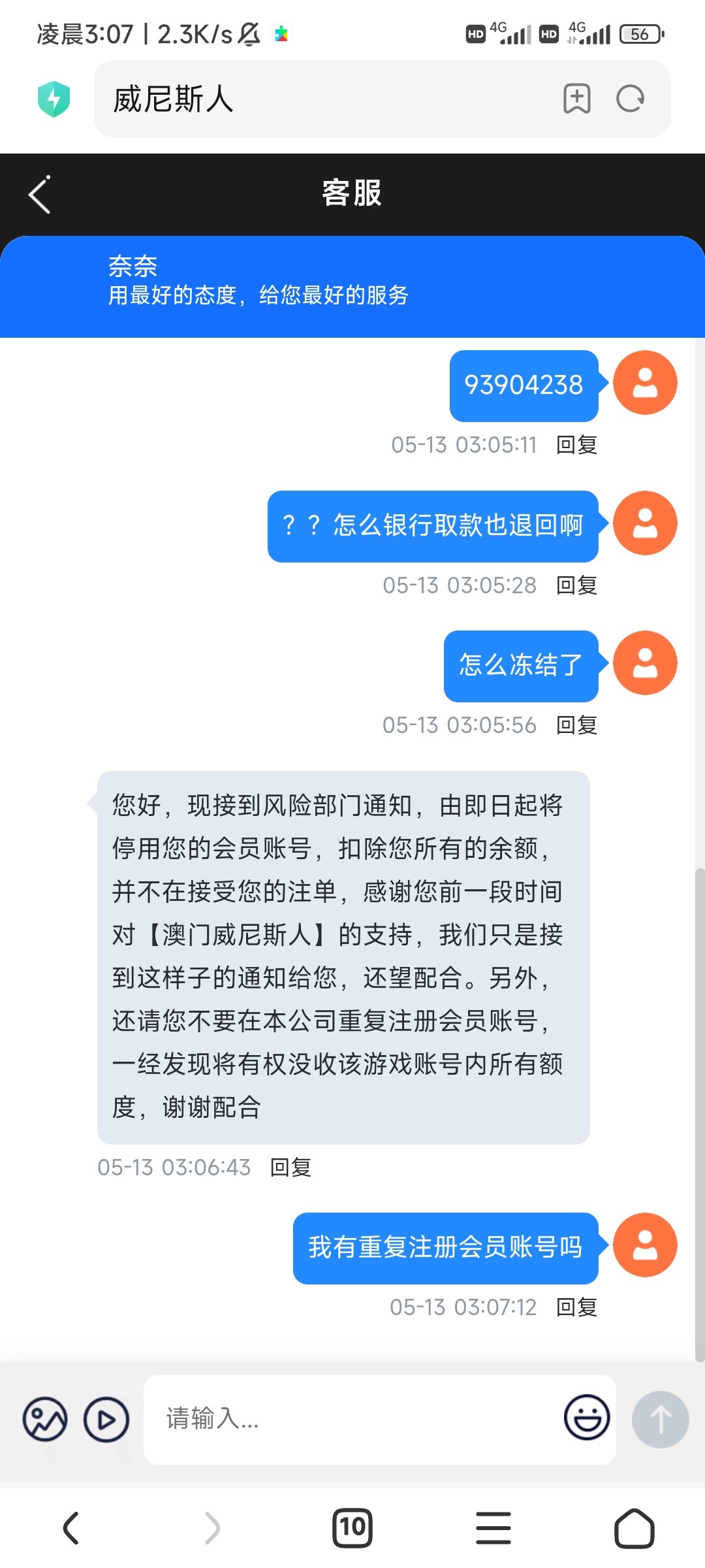 第一次提300出了第二次反水上460直接冻结账号