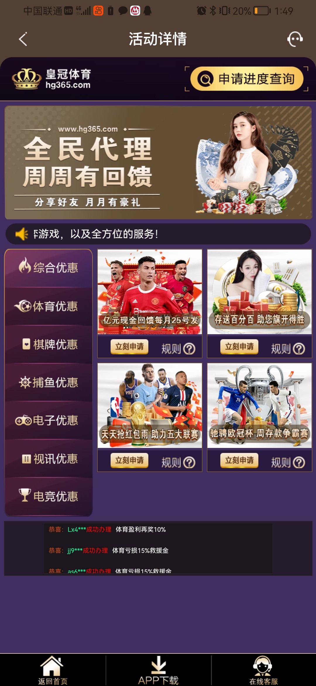 新用户下载app注册绑卡优惠活动里自助申请18彩金/365提,勿充值