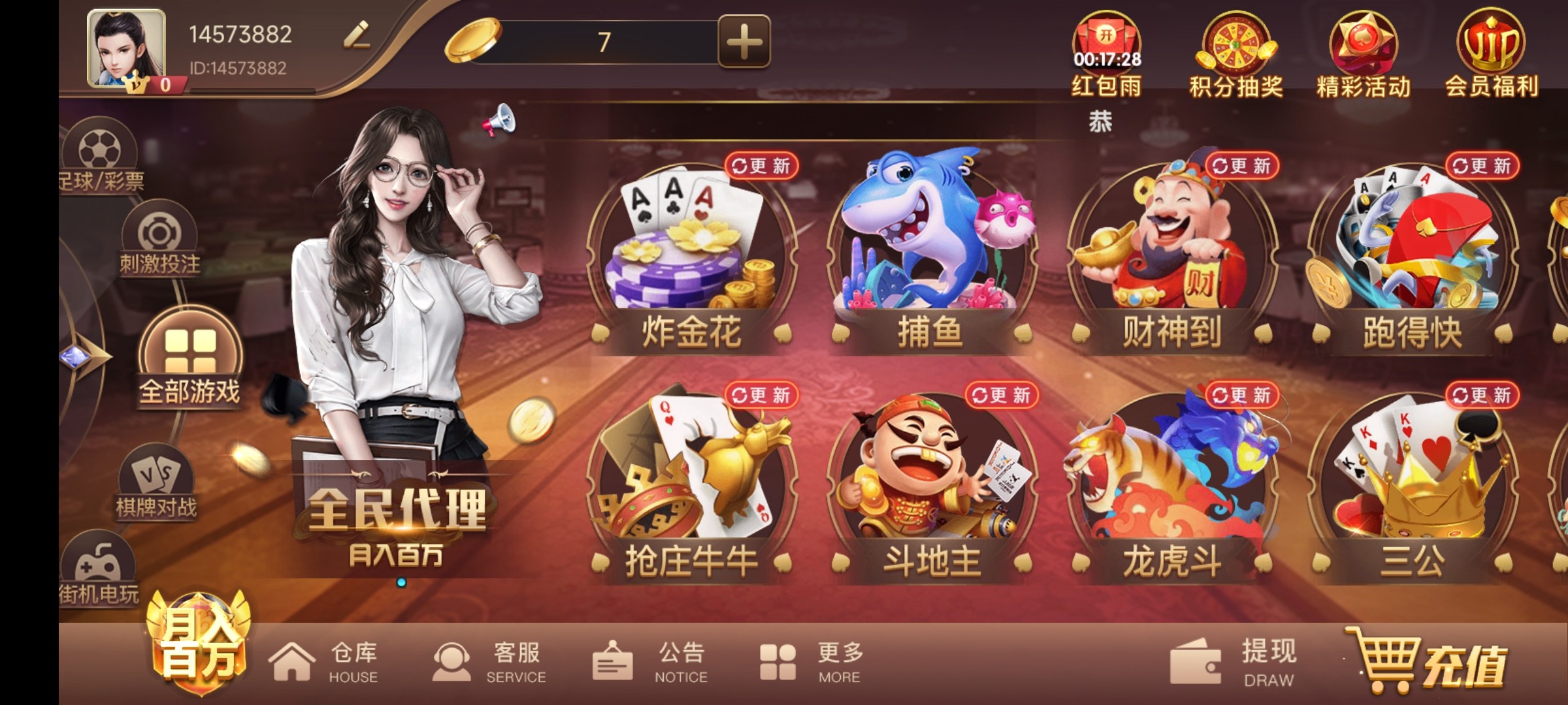 注册登录之后秒送7元,可以0.1元捕鱼