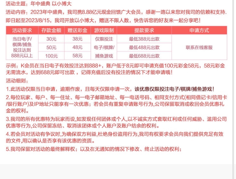 能不能看下活动再发出来 当天要打电子捕鱼棋牌888流水再充值才送